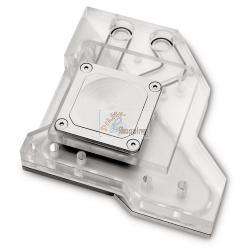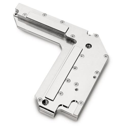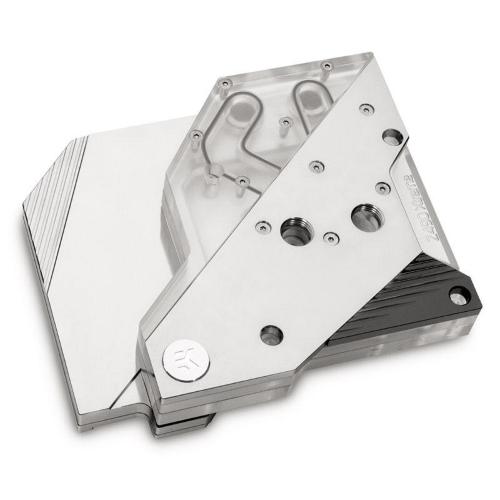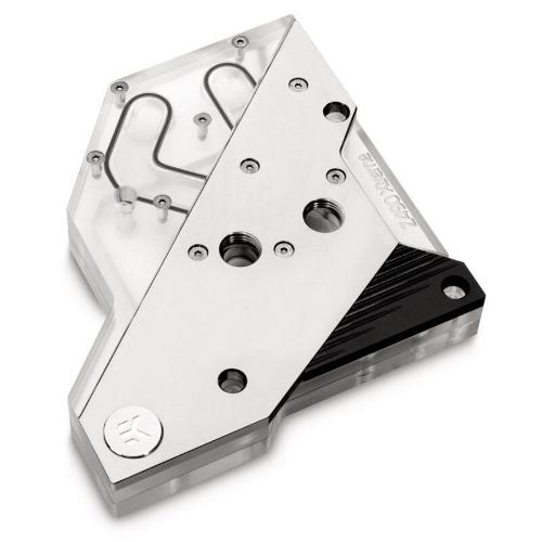 Per la piastra fredda viene utilizzato il rame nichelato più puro disponibile sul mercato, lavorato con precisione su una densa struttura a micro-alette. La parte superiore del monoblocco presenta un mix di acrilico fuso simile al vetro lavorato a CNC, ottone nichelato e un pezzo di alluminio nero Elox.