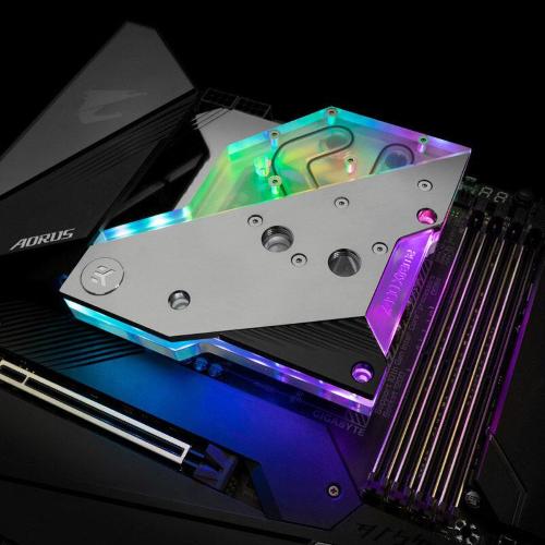 EK-Quantum Momentum Aorus Z490 Xtreme D-RGB è il nuovo multiblocco Quantum Line appositamente progettato per la scheda madre Gigabyte® Aorus® Z490 Xtreme. Dotato del pluripremiato motore di raffreddamento Magnitude con bassa restrizione e prestazioni elevate, questo monoblocco è dotato di una striscia LED D-RGB (indirizzabile) a 3 pin e offre una personalizzazione estetica senza precedenti insieme a prestazioni superiori! Il LED D-RGB nel multiblocco è compatibile con Gigabyte RGB Fusion 2.0 che offre un'esperienza di personalizzazione completa dell'illuminazione.
