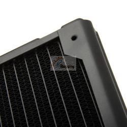 Nota:Hardware Labs specifica una capacità di dissipazione termica fino a 750 watt per questo radiatore, rendendolo adatto per il raffreddamento di due schede grafiche NVIDIA o AMD in una configurazione SLI o CrossFireX, o un processore a 8 core. La configurazione consigliata prevede due ventole da 120 mm montate su un lato del radiatore.
