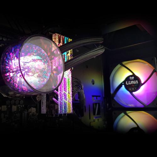 Stelle splendenti infinite di Nebula Il blocco ad acqua è pieno di una miriade di scintillanti stelle lucenti ARGB. Questo effetto luminoso, denominato "Nebulosa", fornirà alla tua build l'effetto più sorprendente Eclipsed with Luna La ventola ARGB ad alta pressione statica Luna AL120 è realizzata su misura per il raffreddamento a liquido, fornendo potenti prestazioni di raffreddamento riflettendo l'illuminazione ARGB attraverso le pale bianche a mezzaluna. Design unico della pompa La potente pompa è stata appositamente progettata per ammortizzare le vibrazioni e sopprimere l'inquinamento acustico. Potente distribuzione del calore Microcanali ad alta densità le alette e l'ampia area di distribuzione del calore sul radiatore garantiscono un'eccellente efficienza di conduzione del calore. Supporta i socket CPU più recenti Il waterblock è compatibile con tutti i socket CPU Intel e AMD più recenti e presenta strumenti intuitivi per un'installazione semplice e rapida. Si sincronizza con la scheda madre indirizzabile e il controller con un clic Gli effetti di luce possono essere sincronizzati con una scheda madre indirizzabile o controllati tramite il controller ARGB One-Click fornito. Tubi resistenti alla corrosione Il tubo è rivestito con nylon intrecciato per una maggiore protezione. |