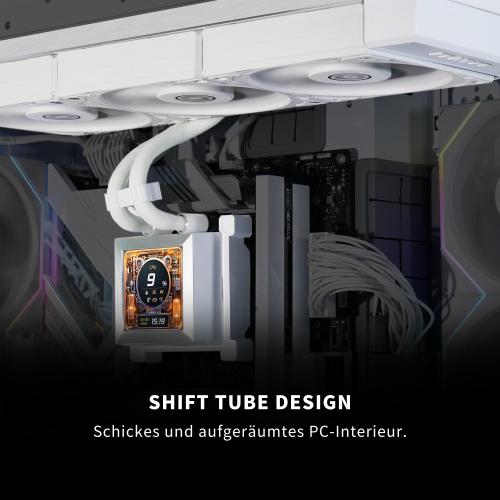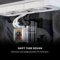 Il raffreddamento ad acqua all-in-one HydroShift LCD 360 Silent di Lian Li combina un design elegante con un potente raffreddamento e un display LCD ad alta risoluzione. Il blocco CPU è dotato di camere multiple che separano in modo più efficiente il refrigerante caldo e freddo, garantendouna migliore dissipazione del calore.