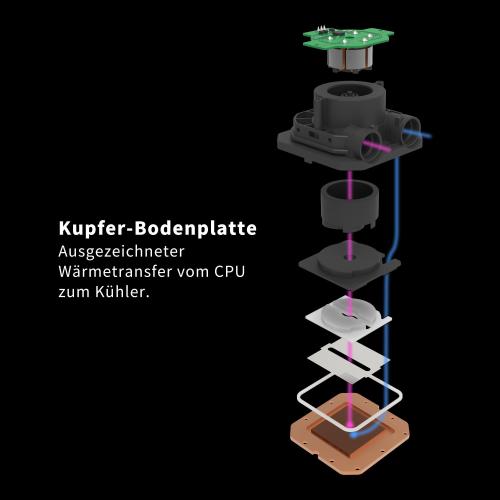 Il motore della pompa è progettato perun funzionamento silenzioso ed efficiente. Sposta efficacemente il liquido refrigerante sull'ampia superficie della base del radiatore rimanendo quasi impercettibile.