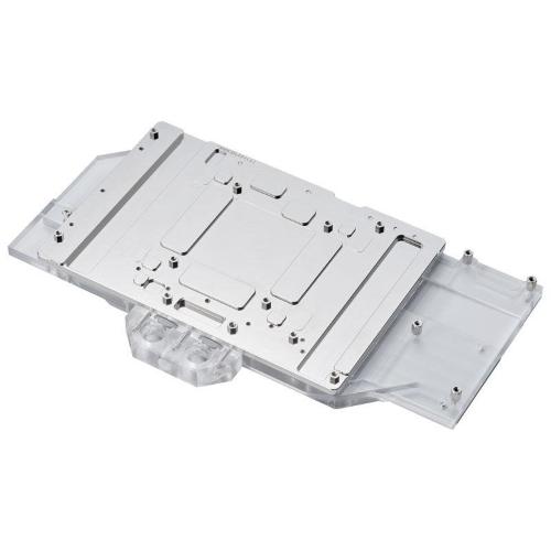 Grazie al design semplice del waterblock, può essere integrato in qualsiasi build personalizzata. Con la piastra posteriore inclusa, puoi coprire completamente la tua carta. La copertura è realizzata in acrilico con un telaio in alluminio, che le conferisce un aspetto elegante e ordinato. Il terminale si trova all'estrema destra per una più semplice integrazione nel circuito. I due fili G1/4 garantiscono un'ampia compatibilità.