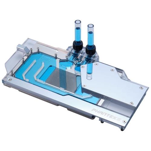 Grazie al design semplice del waterblock, può essere integrato in qualsiasi build personalizzata. Con la piastra posteriore inclusa, puoi coprire completamente la tua carta. La copertura è realizzata in acrilico con un telaio in alluminio, che le conferisce un aspetto elegante e ordinato. Il terminale si trova all'estrema destra per una più semplice integrazione nel circuito. I due fili G1/4 garantiscono un'ampia compatibilità.