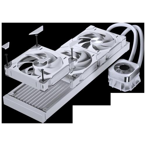 Il Glacier One 420D30 X2 utilizza un'ampia base in rame e un radiatore in alluminio ottimizzato per raffreddare in modo affidabile la tua CPU anche sotto carico pesante. Le tre ventole D30 da 140 mm offrono un'elevata pressione statica pur rimanendo silenziose: perfette per i sistemi overclockati.