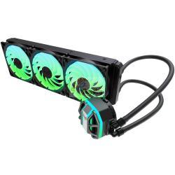l'illuminazione RGB indirizzabile digitalmentenelle ventole e nel corpo della pompa. L'illuminazione è collegata alla scheda madre tramite RGB a 3 pin (5 V) e sincronizzata con l'intera configurazione tramite software. Il connettore passthrough ARGB consente di collegare ulteriori elementi RGB al frigorifero.