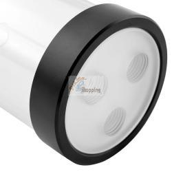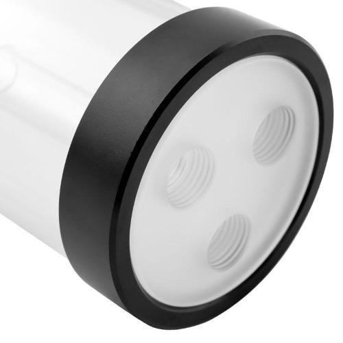 Singularity Computerscon altezza del tubo di 250 millimetri e due tappi in acrilico. Il serbatoio con un diametro di 60 millimetri, il fondo e il coperchio sono realizzati in acrilico satinato e nero. Sette porte G1/4" offrono ampie possibilità di integrazione in un sistema di raffreddamento ad acqua personalizzato.