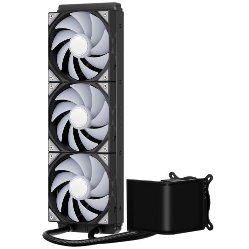 Per un flusso d'aria ottimale, le tre ventole incluseda 120 mmsono dotate diilluminazione ARGB regolabile. Con un flusso d'aria massimo di112,29 m³/he una pressione statica di1,8 mmH2O, queste ventole garantiscono un raffreddamento efficiente anche in caso di carichi pesanti. Nel frattempo, il livello di rumore rimane estremamente basso a soli27,86 dB(A), rendendo questa soluzione di raffreddamento ad alte prestazioni praticamente silenziosa.