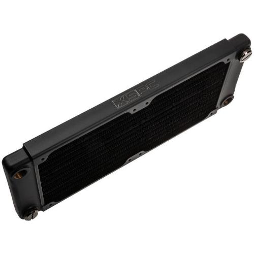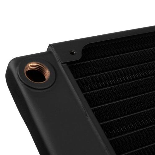 Nonostante le sue dimensioni, la serie TX offre prestazioni eccellenti e bassa limitazione del flusso. Ciò deriva dal nucleo in rame e ottone ad alte prestazioni, che presenta tubi saldati e alette divisorie ad alta densità. Abbiamo ulteriormente migliorato le prestazioni progettando alette che sporgono oltre i tubi. Questo ci ha permesso di aumentare la superficie di raffreddamento senza aumentare le dimensioni esterne. Con 13 tubi e 22 alette per pollice, è il core con la densità più alta che XSPC abbia mai rilasciato, ma grazie alla sottigliezza del core funziona ancora con ventole a bassa velocità.