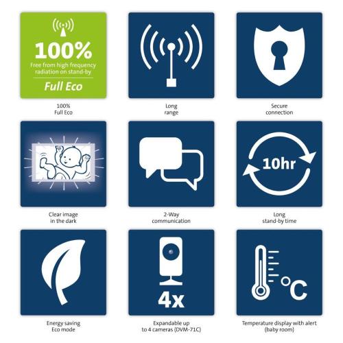Alecto DVM -71 - Baby Monitor con fotocamera e display a colori da 2,4 ", bianco/taupeFunzionalità: