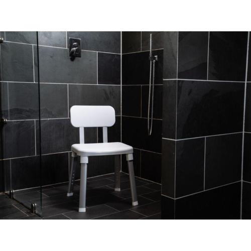 Weinberger Sedia da doccia e da bagno con schienale GratiaLa speciale sedia da bagno con schienale opzionale è l'ausilio ideale per sedersi durante la doccia e il bagno e garantisce maggiore sicurezza e comfort durante la doccia o il bagno. Il vantaggio particolare di questa sedia è che è regolabile in altezza in 7 posizioni da 38 a 48 cm a seconda delle esigenze. Caratteristiche: