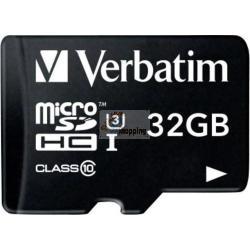 Verbatim Pro U3 R90/W45 microSDHC 32GB Kit, UHS-I U3, Class 10