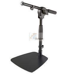Supporto da tavolo / pavimento per microfono K&M 25995, neroQuesto supporto da tavolo per microfono pratico e funzionale offre una posizione sicura. Grazie alla facile regolazione in altezza e al comodo braccio orientabile, il microfono può essere regolato individualmente in un batter d'occhio. Sia che venga utilizzato come supporto da tavolo per la tecnologia broadcast e per conferenze o come supporto da pavimento per la raccolta di amplificatori, il supporto piatto e stabile consente un utilizzo comodo e salvaspazio. Quattro piedini elastici in gomma riducono i fastidiosi rumori di trasmissione al microfono. Caratteristiche: