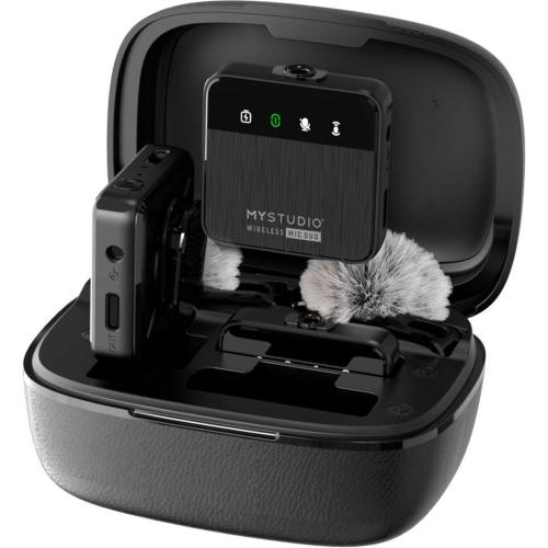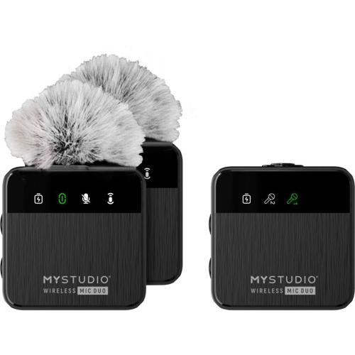 MyStudio Wireless MIC DUO è un set compatto e ultraportatile composto da due microfoni, un ricevitore a due canali e una custodia di ricarica. Compatibile con fotocamere, smartphone, tablet, computer e qualsiasi dispositivo dotato di ingresso audio, offre un audio di alta qualità che migliora i tuoi contenuti e conferisce un suono professionale.