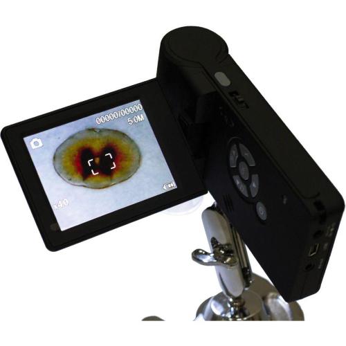 Microscopio digitale Levenhuk DTX 500 MobiMicroscopio USB digitale portatile con display LCD, ingrandimento: 20 - 500x, fotocamera: 5,0 Mpx Il Levenhuk DTX 500 Mobi è un microscopio portatile con display LCD a colori integrato da 3 pollici (7,62 cm di diagonale). Questo modello ingrandisce fino a 400x ed è dotato di uno zoom digitale continuo fino a 4x. Levenhuk DTX 500 Mobi è perfetto per l'osservazione al microscopio di tutti i tipi di superfici e può essere utilizzato sia a casa che all'aperto. Tutto ciò rende questo microscopio un regalo eccellente per ogni bambino in età scolare. Con il microscopio digitale Levenhuk DTX 500 Mobi, è possibile registrare facilmente immagini e video degli oggetti osservati. Tutti i file creati durante le osservazioni vengono memorizzati sulla scheda microSD. Per trasferire le immagini e i video su un computer, il microscopio è collegato al computer con il cavo USB in dotazione. Incluso nella consegna è anche uno speciale software che consente di modificare i file creati ed eseguire misurazioni precise di dimensioni lineari, raggi e angoli con una precisione di 1 micron o migliore. Il microscopio digitale Levenhuk DTX 500 Mobi è alimentato dalla batteria ricaricabile agli ioni di litio in dotazione, che consente fino a 4 ore di lavoro in funzionamento autonomo. Il rivestimento gommato del microscopio sta comodamente e saldamente nella mano e impedisce allo strumento di scivolare. Caratteristiche: