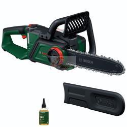 Motosega a batteria Solo Bosch PKE18V?30?28 (senza batteria, senza caricabatterie)Il PKE18V?30?28 è l'utensile da giardino preferito per il taglio di legni duri e teneri con diametri da medi a grandi. Il suo potente motore brushless garantisce un rapido avanzamento del taglio, mentre la tecnologia OptiCut monitora le condizioni di taglio per ridurre i blocchi dannosi e fornire coppia aggiuntiva quando necessario. Con un diametro di taglio massimo di 27 cm e una velocità della catena di 9 m/s, anche i lavori più difficili sono facili da gestire con questa motosega. Il sistema SDS concentrico consente il tensionamento e il cambio della catena senza attrezzi, garantendo una semplice manutenzione. La motosega è alimentata da una batteria da 4,0 Ah che offre fino a 70 tagli per carica, consentendoti di completare le tue attività senza interruzioni. Il sistema di lubrificazione automatica e il paraurti a punta in metallo aggiungono comfort e stabilità, rendendo questa motosega un partner affidabile per tutti i progetti di giardino e fai-da-te. Il dispositivo fa parte della linea 18V POWER FOR ALL ALLIANCE: una batteria compatibile con oltre 10 marchi e oltre 100 strumenti, che offre un'ampia gamma di applicazioni per la casa e il giardino. Caratteristiche: