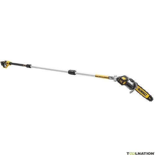 La DeWalt DCMPS567N è un attrezzo telescopico professionale della linea XR 18 V progettato per potatura in altezza e lavori su alberi, rami o siepi senza bisogno di scala. Dotato di asta estendibile fino a circa 4,5 m e lama da 200 mm con catena auto-lubrificata, offre prestazioni elevate con gestione ottimale della sicurezza e della manovrabilità.