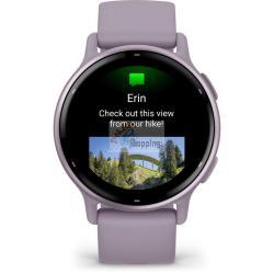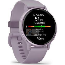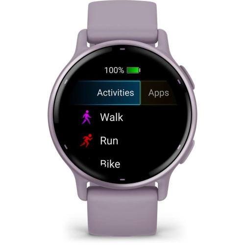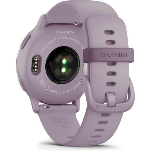 Garmin vívoactive 5 Orchid / Orchid MetallicWith the Vivoactive 5, you'll get to know your body better than ever before and always have a coach tailored to your individual needs. Additionally, you'll stay up to date by receiving Smart Notifications, making contactless payments with Garmin Pay, and enjoying your favorite playlists directly from your fitness smartwatch on your wrist. Body Battery: Check your energy levels throughout the day. This will help you determine whether your body has enough energy for activities or if it's time for rest and sleep. Learn more about how sleep, naps, daily activities, and high stress levels affect your energy. Sleep Coach: Receive an evaluation of your sleep and personalized coaching to determine your sleep needs and improve your sleep quality. Review different sleep phases and rest periods and receive important sleep metrics, such as HFV status, to better understand your well-being. Integrated Sports Apps: With over 30 pre-installed sports and outdoor apps, you can record your activities. You'll find apps for walking, running, cycling, swimming in a pool, wheelchair activities, and much more. Training Effect and Recovery Time: Understand how your body responds to each workout. The recovery time after exercise will let you know when you're ready for your next activity, taking into account training intensity and factors like stress, daily activities, and sleep. Morning Report: Receive a summary of your sleep, recovery, daily calendar, HFV status, and more right after waking up. Customize the report to your liking. Smart Notifications: Get messages, notifications, and calendar events directly on your smartwatch when paired with your iPhone or Android smartphone. With an Android smartphone, you can reply using the smartwatch keyboard and view photos received on the display. Nap Detection: Automatically track and store your naps. With this data, you'll know the benefits of napping, the ideal time for them, and how long they should ideally last. HFV Status: Measure your heart rate variability during sleep and gain insights into your health, recovery, and fitness through daily and 7-day average analyses. Wrist-Based Heart Rate Measurement: The Vivoactive 5 regularly measures your heart rate so you're informed day and night. Stress Level Monitoring: The Vivoactive 5 continuously monitors your heart rate so you can stay informed at all times. Women's Health: Track your menstrual cycle or pregnancy and receive information about training and nutrition. Health Snapshot: Start a 2-minute session to collect important health data. Record necessary health statistics and share them with your doctor. From here, you can create a report to share with your physician. Pulse Oximeter Sensor: Measure blood oxygen saturation with pulse oximetry to exclude breathing problems during sleep. Meditation: Audio-guided meditation exercises can help reduce stress, anxiety, and other emotional burdens. Conscious Breathing: Start a breathing exercise and learn more about stress and breathing. Hydration Tracking: Save your daily water intake as a reminder to drink enough water. Breathing: Monitor your breaths during the day, during sleep, during breathing exercises, and during yoga. Wheelchair Mode: Track your daily pushes, get sports apps, and receive alarms for weight shifts. Garmin Coach: Receive free, flexible training plans for 5K, 10K, and half-marathons from experienced coaches. Fitness Age: Use your age, weekly activity, resting heart rate, and BMI or body fat percentage to calculate whether your body is younger or older than you are. Create Workouts: Create step-by-step workouts in the Garmin Connect app using over 1,600 exercises and send them directly to your smartwatch. Activity Announcements: Get instructions directly from your smartwatch during running and walking activities. Never miss important information and always stay on the right track. Create Intervals: Create your own interval training for running and cycling activities. Perceived Exertion: Provide brief feedback on the level of exertion and how you feel after each workout. Intensity Minutes: Record your moderate and vigorous activity minutes. Fitness Tracking: Keep an eye on your daily steps, calorie consumption, and more using your smartwatch. VO2 Max: View your current fitness level and track long-term changes to set goals, assess your progress, and more (not available in wheelchair mode). Always Up-to-Date Garmin Connect App: The Garmin Connect app provides information about your health, fitness, and activities. You can update your smartwatch, receive insights, and become part of the community. Garmin Pay: Enjoy the convenience of going cashless on the go. Simply make contactless payments with your smartwatch at participating providers. Music: Download songs and playlists from your Spotify, Amazon Music, or Deezer account to listen to music without your smartphone. Safety and Tracking: If you feel unsure or your smartwatch detects an accident, a message with your current location is sent to emergency contacts. Image Display: You can view photos received on your Android smartphone directly on the display of your smartwatch. Connect IQ Shop: Download watch faces, data fields, and apps to your paired smartwatch. Two Font Sizes: Choose a font size that's easy for you to read to make all information easily understandable. Features: