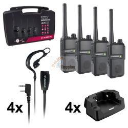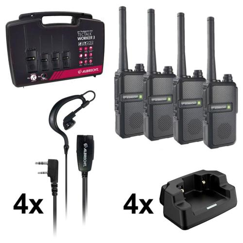 Ricevitori PMR: set valigetta Albrecht da 4 pezzi, Tectalk Worker 3Le radio colpiscono gli utenti professionali con il loro design robusto e le numerose funzioni. L'alloggiamento resistente agli spruzzi d'acqua è ideale per l'uso esterno. I dispositivi sono alloggiati in una robusta custodia rigida per un trasporto e uno stoccaggio sicuri. Fornitura: 4 radio Tectalk Worker 3, 4 cuffie, 4 caricatori con supporto + adattatore di rete, 4 batterie da 2200 mAh, 4 clip da cintura, 4 cinghie da polso, 1 custodia per il trasporto, 1 manuale Caratteristiche: