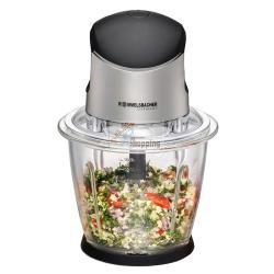 Rommelsbacher Multi Chopper MZ 500Il multi-tritatutto di alta qualità di ROMMELSBACHER rende divertente il lavoro in cucina. Tritare, affettare, ridurre in purea: l'apparecchio lavora cipolle, erbe aromatiche, verdure, frutta, noci, carne e altro ancora con la semplice pressione di un pulsante. In un batter d'occhio nascono insalate di verdure crude sane e ricche di vitamine, creme spalmabili, fantasiose salse e pesti. È ideale anche per preparare miscele di spezie e sali per condire. La lama in acciaio inossidabile a 4 lame funziona in modo molto efficiente e produce risultati perfetti. Il contenitore in vetro trasparente è estremamente robusto, di qualità alimentare, igienico e molto facile da pulire. Un motore potente soddisfa tutte le esigenze in modo silenzioso e con vibrazioni ridotte e il sistema di sicurezza integrato protegge dall'attivazione involontaria. Tutte le parti rimovibili possono essere messe in lavastoviglie per una facile pulizia. Caratteristiche: