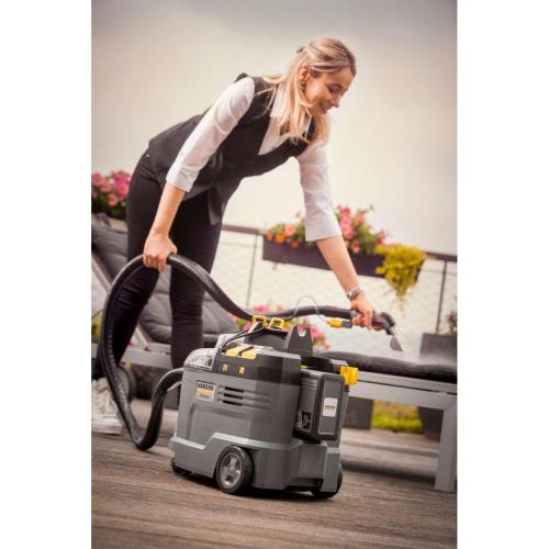Kärcher puzzi 9/1 bpPer la massima libertà di movimento durante la pulizia del rivestimento in fibra: il robusto puzzi 9/1 bp a corda di aspirapolvere con aspirapolvere BP a battito a corto. Essendo l'unico dispositivo professionale di estrazione spray a batteria sul mercato, questa puzzi ispira con prestazioni eccezionali e massima libertà di movimento durante la pulizia di tappezzerie e superfici tessili, ad esempio nell'industria alberghiera e sulla catering, nell'interno del veicolo o nella pulizia degli edifici. Allo stesso tempo, questa puzzi è estremamente silenziosa, in modo che possa essere utilizzata anche nelle aree pubbliche e, grazie alla maniglia di trasporto ergonomica, può essere facilmente trasportato con una sola mano. Per i migliori risultati in una pulizia profonda, la soluzione di pulizia viene spruzzata in profondità nelle fibre tessili sotto pressione e aspirata di nuovo insieme alla sporcizia allentata. rimovibile, smart 2-in-1 contenitore