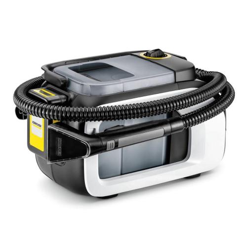 Kärcher SE 3-18 Aspirapolvere compatto per liquidi/secco, bianco (con batteria e caricabatterie)Pulizia profonda con la massima libertà di movimento: l'aspirapolvere SE 3-18 Compact lava energicamente le superfici tessili e non lascia residui. Pulisci ovunque senza cavi Facile da usare per la pulizia igienica Caratteristiche: