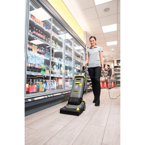 Lavasciuga pavimenti Kärcher BR 30/4 C ADVLa lavasciuga pavimenti BR 30/4 C, molto compatta e leggerissima con un peso di soli 12 kg, è l'alternativa innovativa e potente per la pulizia manuale di superfici dure da 20 a 200 m². Dopo la pulizia il pavimento risulta immediatamente asciutto, quindi antiscivolo e nuovamente calpestabile. Ideale per la pulizia di piccoli negozi, ristoranti, stazioni di servizio, supermercati, aree sanitarie, hotel nella zona snack o anche come complemento alle lavasciuga pavimenti esistenti. Con aspirazione manuale per aspirare angoli inaccessibili. Con rullo in microfibra specifico per la pulizia delle piastrelle in gres fine. Grazie alla sua forma, la macchina è facile da manovrare come un aspirapolvere a spazzola. Rispetto al lavaggio tradizionale, la macchina ha il vantaggio di una pressione di contatto 10 volte superiore e quindi di prestazioni di pulizia notevolmente più elevate. E lo fa ad una velocità del rullo di circa 1500 giri. Può aspirare avanti e indietro. In caso di sporco ostinato è possibile anche sollevare le barre di aspirazione. Ciò garantisce un tempo di esposizione più lungo per il liquido detergente. Caratteristiche e vantaggi: