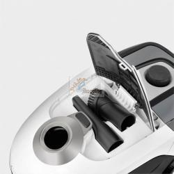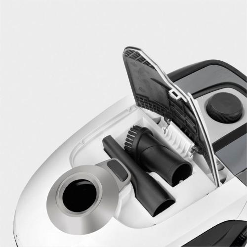 Aspirapolvere Kärcher VC 2, bianco / neroIl VC 2 di Kärcher convince con un sistema di filtraggio igienico e conveniente: i sacchetti pieni possono essere smaltiti facilmente senza entrare in contatto con lo sporco. L'aspirapolvere compatto è particolarmente adatto per l'uso in appartamenti o case più piccole. Ideale per la pulizia approfondita di pavimenti duri e tappeti o, grazie alla bocchetta per fessure e alla spazzola per mobili, adatto anche per la pulizia di spazi ristretti e superfici delicate. Un altro punto di forza del VC 2 è il filtro igienico HEPA, che filtra in modo affidabile lo sporco più fine come polline o altre particelle che causano allergie. Un vano accessori integrato, la regolazione della potenza sull'apparecchio e una pratica posizione di parcheggio offrono ulteriore comodità durante il lavoro. Caratteristiche: