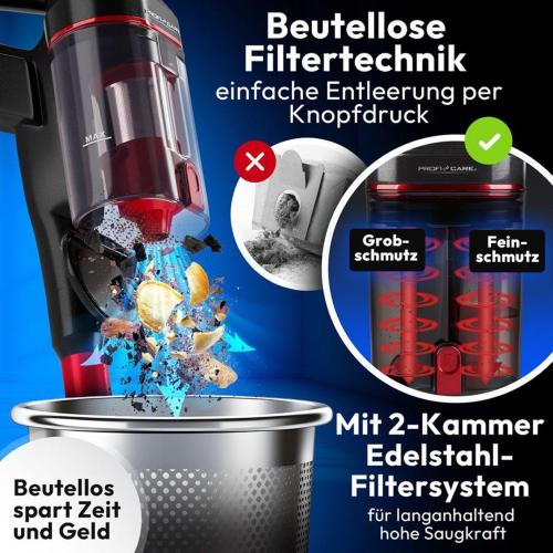 ProfiCare PC BS 3136 A Aspirapolvere manuale e da pavimento senza filiCon questo aspirapolvere senza fili puoi pulire la tua casa in modo flessibile e completo, senza fastidiosi cavi. La batteria ad alte prestazioni dura fino a 35 minuti e si ricarica facilmente tramite il supporto a parete. La combinazione di aspirazione manuale e da pavimento rende l'apparecchio adatto alla pulizia dal pavimento alle tende. Prestazioni elevate per ogni superficie Funzionamento semplice e accessori utili Caratteristiche:
