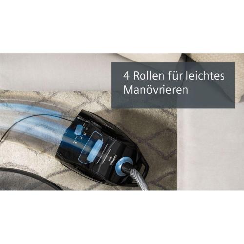 Siemens VSQ5X1230 Q5.0 silenzio estremoPotenzaUna buona qualità dell'aria è importante per tutti, non solo per le persone allergiche. Il filtro HEPA rimuove dall'aria il 99,95% delle particelle di polvere fine, batteri e sostanze inquinanti, garantendo un'aria di scarico particolarmente pulita. Il filtro è anche lavabile, eliminando costi aggiuntivi. Grazie all'activeSound Control, l'aspirazione è piacevolmente silenziosa senza compromettere le prestazioni di pulizia. L'intero apparecchio, dall'ugello al condotto dell'aria di scarico, è stato sviluppato per essere particolarmente silenzioso. Con un raggio d'azione di 13 metri, l'aspirapolvere offre una maggiore comodità. Il cavo più lungo facilita la pulizia di stanze grandi e angoli difficili da raggiungere senza dover cambiare continuamente la presa. Ciò rende la pulizia più efficiente e richiede meno tempo. Un altro vantaggio sono gli accessori integrati, sempre a portata di mano. Le bocchette per fessure e imbottiture sono riposte in modo sicuro sotto il coperchio dell'apparecchio, rendendo le noiose ricerche un ricordo del passato. L'aspirapolvere convince anche per il volume del sacchetto per la polvere XL. Grazie alla generosa capacità potrai pulire più a lungo senza dover cambiare continuamente il sacco. Ciò fa risparmiare tempo, aumenta la comodità e riduce i costi successivi. Caratteristiche: