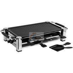 Raclette Rommelsbacher RCC1500Voglia di una rilassante grigliata in convivialità? Questa elegante raclette per 8 persone dal nobile design svizzero non lascia nulla a desiderare: la piastra grill pressofusa con rivestimento antiaderente strappata è ideale per grigliare senza grassi. Durante la pausa pranzo le pentole Superior possono essere parcheggiate sul parcheggio integrato. Elegante e pratico. Caratteristiche: