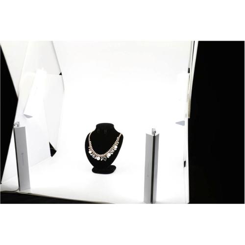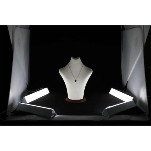 Luci Halo Bar dimmerabili che possono essere posizionate ovunque all'interno del sistema fotografico portatile Foldio 3 (all'interno o davanti) Il kit Halo Bar include: