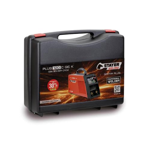 -Saldatore INVERTER MMA STAYER SUPER PLUS 160 GE K - Cavo di alimentazione:: 2m x 2.5 mm - Cavo portaelettrodo: 2.5m 16 mm - Cavo di terra con pinze: 1.5m 16 mm - Martello con spazzola -Valigetta per iltrasporto |
