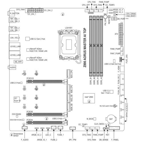 | Anschlüsse Stagista - Beleuchtung | 1x RGB a 4 pin (+12V/?G/?R/?B, max. 2A), 4x ARGB a 3 pin (+5V/?DATA/?GND, max. 3A, GIGABYTE Gen2) |