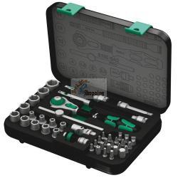 Set cricchetto WERA 8100 SA 2 Zyklop Speed attacco 1/4''Set Zyklop da 42 pezzi in robusta valigetta di metallo: cricchetto Zyklop con attacco 1/4". Grazie alla dentatura fine con 72 denti è possibile un angolo di ritorno ridotto di 5°. La testa del cricchetto può essere ruotata liberamente e può essere bloccata in qualsiasi posizione tramite l'interruttore a scorrimento montato su entrambi i lati. È possibile lavorare senza problemi con un ampio spazio per le mani libere anche in situazioni di installazione molto strette o difficili da raggiungere. Il fissaggio definito a 0°, 15° e 90° a sinistra e a destra consente un lavoro sicuro senza scivolare la testa del cricchetto. Nella posizione 0°, il cricchetto con adattatore e punta può essere utilizzato come un cacciavite convenzionale supportano la rotazione rapida. L'impugnatura Kraftform si adatta perfettamente alla mano e previene lesioni alla mano come vesciche e calli. I materiali duri utilizzati per l'impugnatura offrono una presa rapida senza pericolo che la pelle si attacchi all'impugnatura. Le zone più morbide e "antiscivolo" consentono la trasmissione senza perdite di forze elevate prolunghe con manicotto a sgancio rapido, 1 prolunga oscillante, 1 impugnatura a croce, 1 giunto universale, 1 elemento di collegamento con mandrino a sgancio rapido, 22 bit. Con trovautensili "Take it easy": codice colore in base alle dimensioni. Caratteristiche: