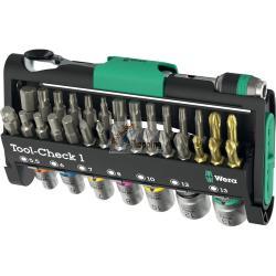 Set di attrezzi Wera Tool-Check 1, 38 pezziIl Wera Tool-Check è un set di utensili super compatto da 38 pezzi per il funzionamento manuale e con la macchina, ideale per l'uso mobile e il lavoro preciso in spazi ristretti. Il cricchetto Zyklop Mini Bit incluso con meccanismo a denti fini (60 denti) consente un piccolo angolo di ritorno di 6° e un facile passaggio dalla rotazione sinistra a destra. Grazie al trova-utensili "Take it easy" con codifica a colori, puoi trovare lo strumento giusto in un lampo. Caratteristiche: