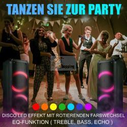 Riflessione PS09BTAltoparlante mobile per feste con luce da discoteca, funzione karaoke, radio, Bluetooth, USB, slot MicroSD, AUX-IN e batteria ricaricabile integrata. Caratteristiche: