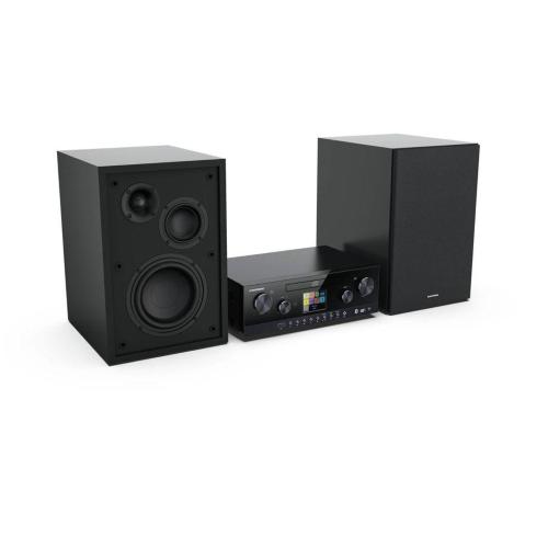 Grundig CMS 5000 BT DAB+ WEB Le tue orecchie stanno facendo grandi occhi. Che tu ascolti la radio con DAB+ in qualità senza crepitii e selezione digitale o riproduci in streaming la colonna sonora che preferisci tramite Bluetooth: il nostro sistema micro HiFi premium CMS 5000 BT DAB+ WEB non lascia nulla a desiderare. Su richiesta porta tutti i tuoi album preferiti a casa tua tramite Spotify - con l'inconfondibile potenza di uscita di 2 x 50 Watt e il suono impressionante di un sistema di altoparlanti a 3 vie. L'alloggiamento in alluminio di alta qualità con il pannello frontale in Dark Inox assicura che i tuoi occhi siano soddisfatti durante l'ascolto, e l'ampio display a colori da 2,4" per un funzionamento semplice e intuitivo. Beh, non suona bene?