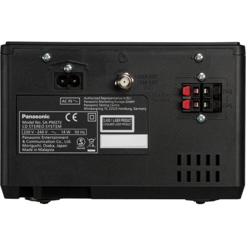 Grazie all'amplificatore interno e ai potenti altoparlanti separati, l'SC-PM272 offre un suono avvolgente con toni ricchi. Gli altoparlanti sono dotati di driver full-range da 10 cm e porte bass reflex e forniscono senza sforzo 20 watt di suono stereo.
