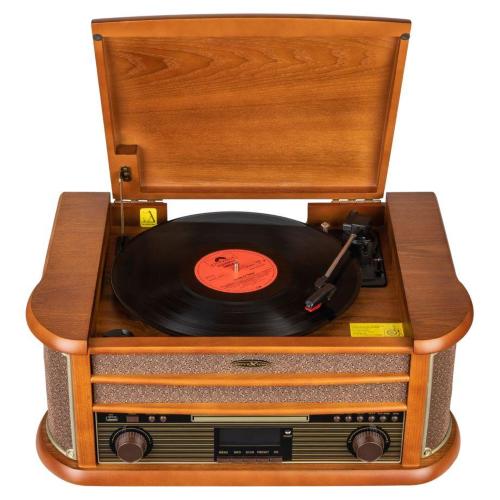 Il design retrò con custodia in legno e piatto girevole a vista rende il sistema un vero e proprio eye-catcher. Allo stesso tempo approfittate della tecnologia digitale come la ricezione DAB+, la ricerca automatica delle stazioni e gli slot di memoria per le vostre stazioni preferite. L'ora e la data vengono impostate automaticamente tramite DAB o FM oppure regolate manualmente.