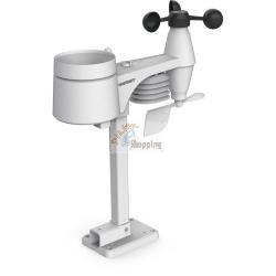 Features Base Station:  Receives weather data from the 5-in-1 outdoor sensorLarge colour display and elegant designGraphical weather trend display (12 hours)Measurement of indoor temperature (°C/°F), humidity and air pressureDisplay of outdoor temperature (°C/°F), -humidityDisplay of wind direction and wind speedBeaufort index (scale for the classification for wind speeds)Precipitation rate with history (day/week/month)Historical bar chart display for precipitation (last 5 days) or pressure change (last 1,3,6,12 and 24 hours)Indoor climate indicatorHighest and lowest value function alarmMin./Max. memory (up to 24 hours)Weather index display: Feels like (perceived temperature), dew point, wind chill factor, heat indexRadio controlled time and date settingMoon phase displayWake up function with sleep timer (snooze) and frost warningWeekday selectable in 5 languages (EN / DE / FR / ES / IT / NL / RU)Ambient light sensor for automatic dimming function of LED backlightingPower supply: Mains adapter, CR2032 back-up battery (not included)Dimensions: 118 x 192.5 x 21 mm Features Outdoor Sensor:  Stazioni meteoMeasurement of temperature, humidity, wind speed, wind direction and precipitationTransmission range up to 150 metresBattery operated: 3x AA (not included)Dimensions: 343.5 x 393.5 x 136 mm |
