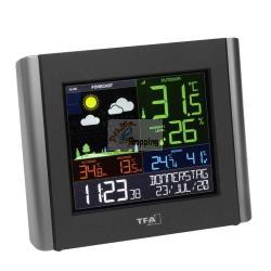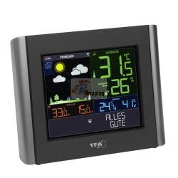 Stazione meteorologica radio con WiFi VIEW METEO 35.8000La stazione meteorologica wireless VIEW METEO con WLAN offre inizialmente tutte le funzioni di una classica stazione meteorologica wireless e può essere utilizzata anche indipendentemente senza connessione WLAN e app. La temperatura e l'umidità esterna locale vengono determinate tramite un trasmettitore radio e inviate alla stazione con una portata fino a 100 m (in campo libero), un Il sensore interno misura il clima interno, il meteo viene visualizzato sotto forma di simboli e ci sono funzioni aggiuntive come valori massimi e minimi, punto di rugiada e impostazioni di allarme, nonché un orologio con data e giorno della settimana completamente scritto. Il display a colori ad alto contrasto può essere regolato su tre livelli di luminosità e oscurato automaticamente di notte. La stazione meteorologica è integrata nella WLAN locale tramite l'app gratuita TFA VIEW. Segui semplicemente le istruzioni nell'app. Una volta connessa la stazione ad Internet, VIEW METEO mostra tutte le sue possibilità. Il display cambia e un piccolo simbolo indica quali informazioni verranno ora fornite tramite il servizio meteo online. Invece delle previsioni del tempo basate sui cambiamenti della pressione atmosferica, ora ricevi una previsione di 12 ore professionale e continuamente aggiornata per la tua regione. Inoltre, vengono visualizzati altri dettagli meteorologici interessanti, come le temperature massime e minime previste e la probabilità di pioggia. L'ora e il calendario vengono aggiornati regolarmente e puoi anche programmare messaggi personali o informazioni meteo aggiuntive da visualizzare sul display della stazione meteo tramite l'app TFA VIEW. Utilizzando l'app VIEW, la gamma di servizi è ancora più ampia: recupera i valori misurati della tua stazione meteo VIEW METEO da qualsiasi parte del mondo utilizzando il tuo tablet o dispositivo mobile, visualizza le registrazioni degli ultimi 30 giorni, imposta limiti di allarme ed essere informato tramite notifica push in caso di allarme. Aggiungi fino a 50 trasmettitori radio e dispositivi aggiuntivi al trasmettitore Thermo Hygro in dotazione, che puoi recuperare tramite l'app. I trasmettitori compatibili sono (disponibili opzionalmente): Trasmettitore termo-igro (cat. n. 30.3800.02), anemometro (cat. n. 30.3801.02) e trasmettitore per piscina (cat. n. 30.3801.02). no. 30.3238.06). Caratteristiche: - Display a colori con 3 livelli di luminosità e funzione di attenuazione regolabile (funzionamento continuo solo con alimentatore)