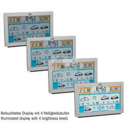 A supplied power cable powers the station. Alternatively, three standard AA batteries (not included) can be used as a backup – for example, in the event of a power failure or if you move the device. When plugged in, the station has a permanent and dimmable backlight with four brightness levels. This way, you can always keep an eye on the local weather conditions – regardless of whether you set up the station or mount it on the wall. The current time at your selected location is continuously displayed, optionally together with the full date or the day of the week (available in six languages)