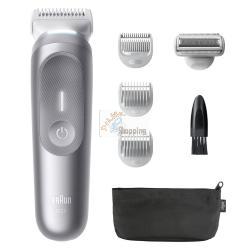 Detergente per il corpo Braun BG 7550Braun BG 7550 BodyGroomer è la soluzione premium per gli uomini che apprezzano una cura della pelle comoda, accurata e rispettosa della pelle. Con il suo potente motore, le lame affilate in acciaio inossidabile e il design sofisticato, il toelettatore garantisce il massimo controllo, anche in aree difficili da raggiungere o sensibili. La tecnologia SkinShield protegge in modo affidabile la pelle, anche con l'uso quotidiano. Tre accessori pettine ti consentono di adattarti in modo flessibile alla lunghezza dei peli desiderata: per una rifinitura particolarmente delicata nella zona intima o una rifinitura più corta su petto e gambe. Il design impermeabile ne consente sia l'utilizzo sotto la doccia che la pulizia rapida sotto l'acqua corrente. Ciò mantiene il rasoio igienico e pronto per l'uso, tutti i giorni. La potente batteria agli ioni di litio offre un'autonomia fino a 100 minuti e può essere caricata completamente in un'ora grazie alla funzione di ricarica rapida. L'indicatore di carica LED integrato mostra in ogni momento lo stato della batteria. Grazie all'impugnatura ergonomica e antiscivolo, il rifinitore sta saldamente in mano, per un controllo assoluto ad ogni movimento. Caratteristiche:
