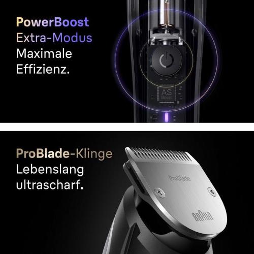 Regolabarba Braun Series 9 BT 9520Braun BT 9520 è un regolabarba Serie 9 ad alta precisione, ideale per gli uomini che richiedono i più alti standard di styling. Con la sua innovativa rotella di precisione, due pettini e la lama ProBlade ultra affilata, ti offre il massimo controllo su qualsiasi stile di barba, dalla barba di tre giorni alla barba lunga e folta. Grazie alle 52 lunghezze di taglio regolabili (da 0,5 a 20 mm), puoi modellare la barba o i capelli con precisione millimetrica. La resistente lama in acciaio inossidabile garantisce risultati uniformi in una sola passata, anche con i peli più spessi. La potente batteria agli ioni di litio garantisce fino a 180 minuti di autonomia senza filo. È integrata anche una funzione di ricarica rapida, ideale se hai bisogno di andare avanti velocemente. Un display LED integrato ti informa in modo affidabile sullo stato di ricarica. Grazie al suo design ergonomico e antiscivolo, il BT 9520 è comodo da tenere in mano ed è adatto sia per l'uso quotidiano che per la toelettatura professionale a casa. Che si tratti di barba, contorni o sezioni di capelli più lunghe, il BT 9520 è un tuttofare flessibile con tecnologia all'avanguardia per risultati precisi. Caratteristiche: