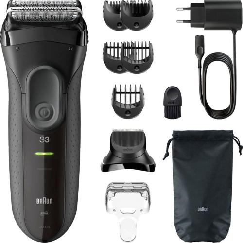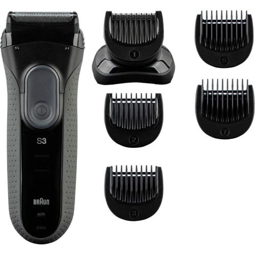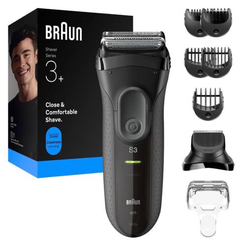 Rasoio elettrico BRAUN Series 3+ con accessorio regolabarba – Rasoio a secco per uomoCon il rasoio Braun Series 3+, otterrai una rasatura profonda anche con i peli del viso più lunghi. Due elementi in lamina e un rifinitore centrale lavorano insieme per tagliare in modo uniforme. Le lame flessibili seguono i contorni del viso e facilitano la rasatura nelle aree difficili. Il rasoio è impermeabile e facile da pulire. Lo stile preciso diventa semplice Affidabile per l'uso quotidiano Caratteristiche: