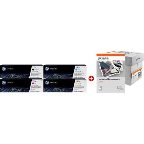 ORIGINALE HP Value Pack nero / ciano / magenta / giallo / Bianco 131A MCVP 01 + Prindo Universal Papier 2500 Blatt ~6920 Seiten mod. 131A MCVP 01 + Prindo Universal Papier 2500 Blatt EAN 2200000054036