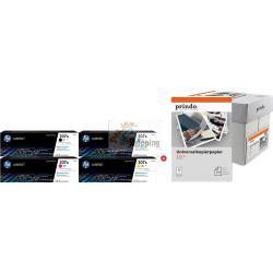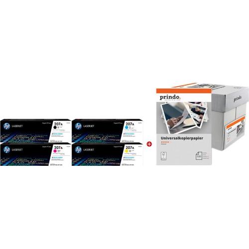 ORIGINALE HP Value Pack nero / ciano / magenta / giallo / Bianco 207A MCVP 01 + Prindo Universal Papier 2500 Blatt ~5100 Seiten mod. 207A MCVP 01 + Prindo Universal Papier 2500 Blatt EAN 2200000054012