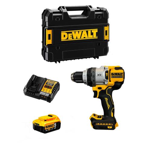 - Trapano a Percussione DeWALT DCD1007 - Impugnature laterale - Porta inserti magnetico - Gancio per cintura - 1 Batterie 18V 5,0 Ah - Caricabatterie DCB1104 -ValigettaTSTAK II |